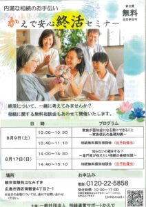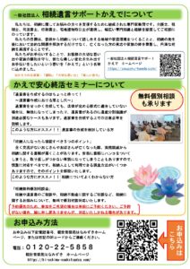 納骨堂観世音陵苑はなみずきのホームページへご訪問いただきありがとうござきます。 下記の通り、『かえで安心終活セミナー ‐円満な相続のお手伝い-』を開催いたします。 終活について、一緒に考えてみませんか?セミナー終了後、無料相談会も実施いたします。