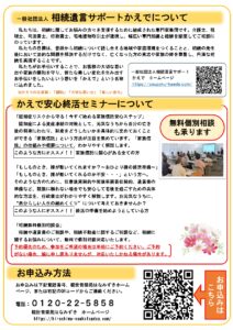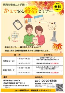 下記の通り、『かえで安心終活セミナー ‐円満な相続のお手伝い-』を開催いたします。