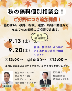 このたび、皆さまからのご要望にお応えし、秋の無料個別相談会を追加開催いたします。